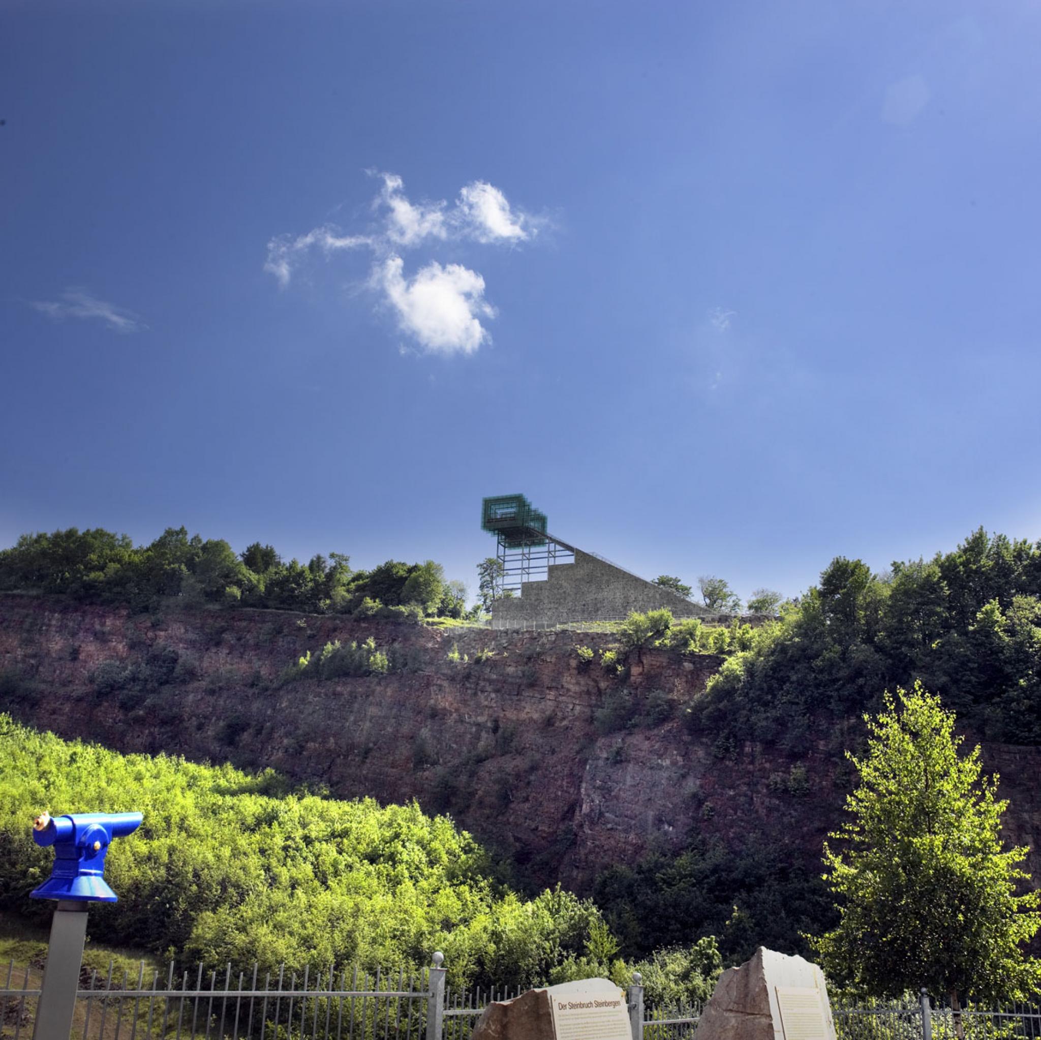 Der Jahrtausendblick ist als dezentrales Projekt der EXPO2000 in Hannover entstanden. Er befindet sich inmitten der ehemaligen Erlebniswelt steinzeichen steinbergen unweit der BAB 2 und ist als Landmarke von weither sichtbar. Mit seinen 250 Metern Höhe und 156 Stufen hat man von hier einen atemberaubenden Blick in den angrenzenden aktiven Steinbruch sowie ins Wesertal und die norddeutsche Tiefebene.