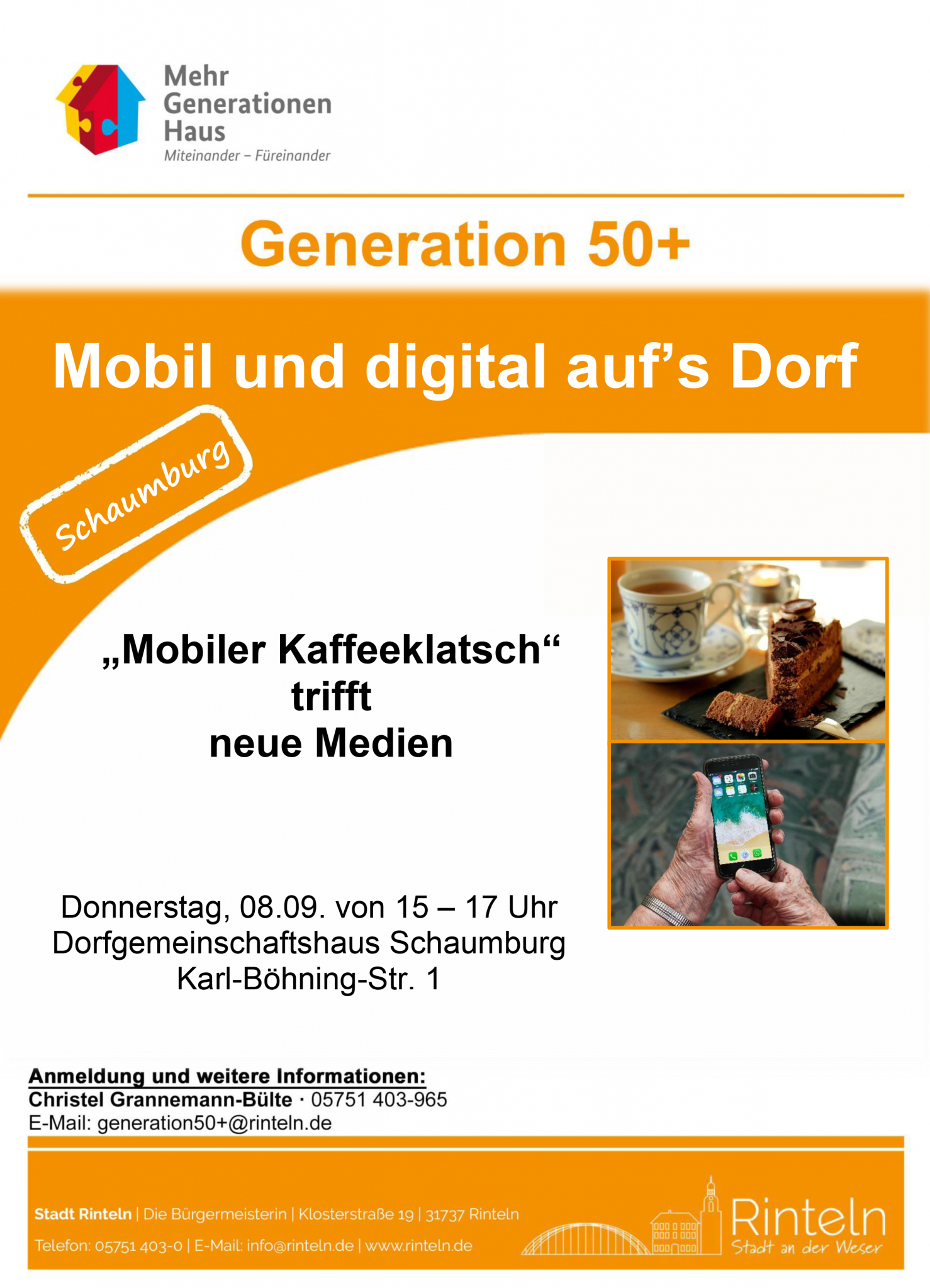 Die „Generation 50+“ freut sich, Sie bei Kaffee und Kuchen begrüßen zu dürfen. Das mobile Angebot findet abwechselnd in den verschiedenen Rintelner Ortsteilen statt, sodass jeder und jede die Möglichkeit bekommt, ohne weiten Anfahrtsweg einen gemütlichen Nachmittag zu verbringen.