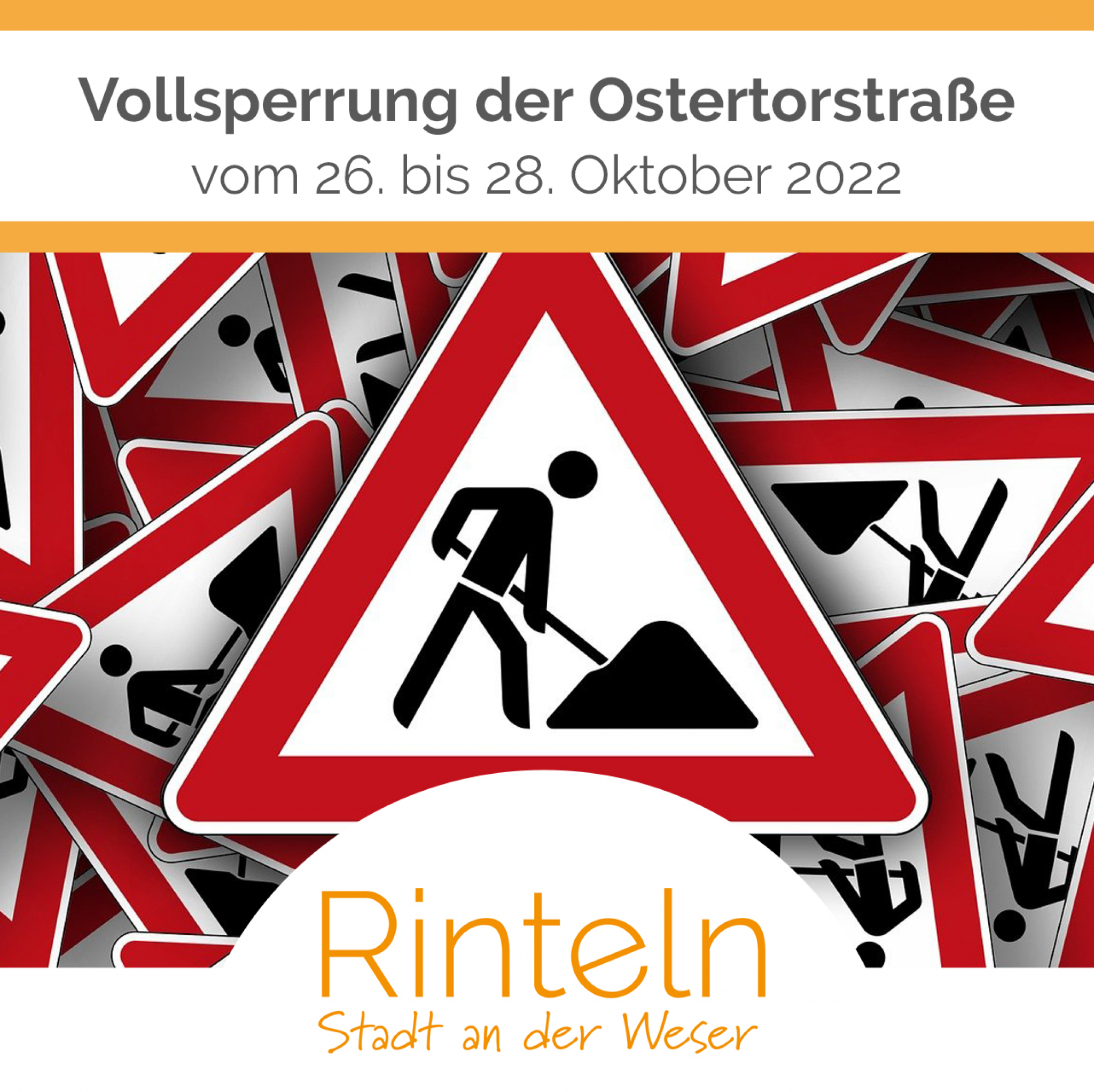 Zur Herstellung eines Baumtores muss die Ostertorstraße in Rinteln Höhe Haus-Nr. 15 in der Zeit vom 26.10. bis voraussichtlich 28.10.2022 voll gesperrt werden.
