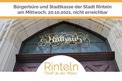 Bürgerbüro und Stadtkasse der Stadt Rinteln am Mittwoch, 20.10.2021, nicht erreichbar