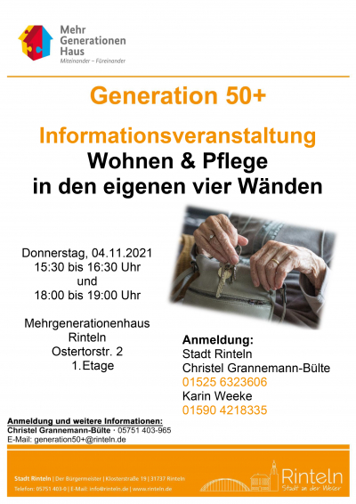 Koordinatorin „Generation 50+“ lädt ein zum Informationstag: Beratung für Wohnen und Pflege in den eigenen vier Wänden
