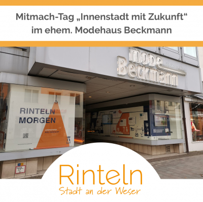 Am 02. Februar 2023 ist der offizielle Projektstart von „Rinteln morgen – Leerstand neu gedacht“. Das ehemalige Modehaus Beckmann wird dabei zum Ort der Kollaboration und Innovation. In den Schaufenstern können sich Passantinnen und Passanten jederzeit zum Projekt informieren.